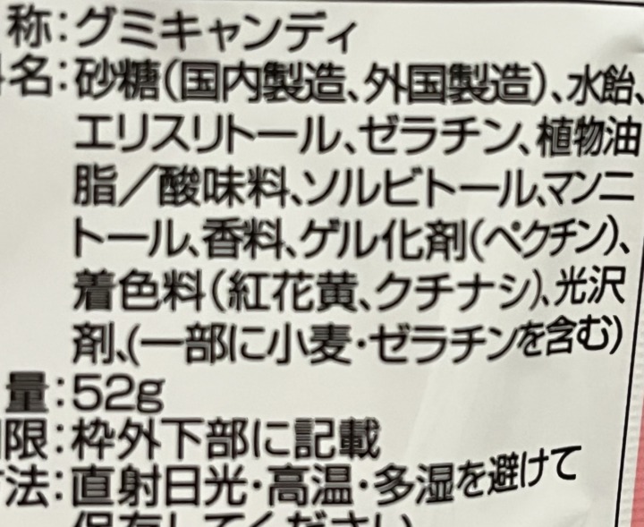 グミの成分をご存知でしょうか?主成分は砂糖です。そして、グミの表面のパウダーや味の調整には酸味料が使われています。